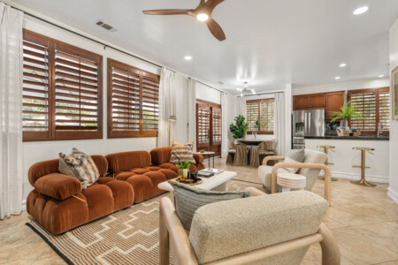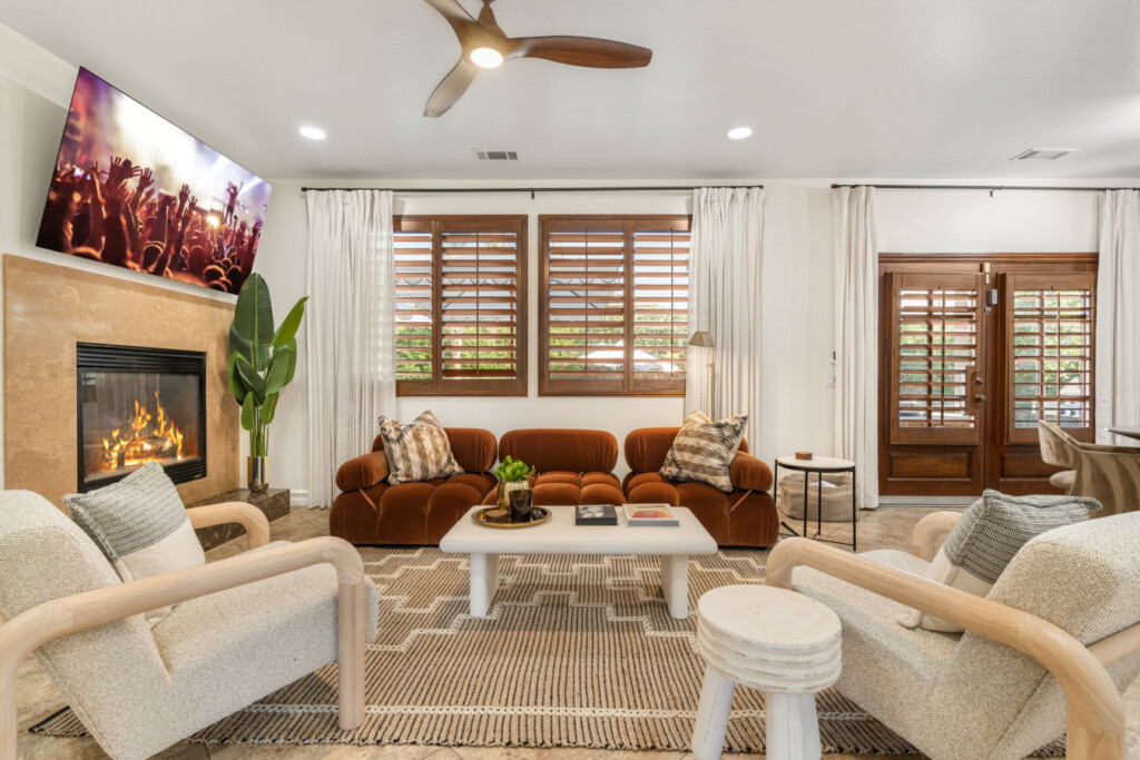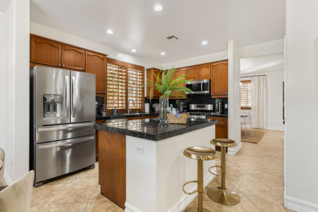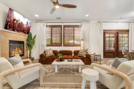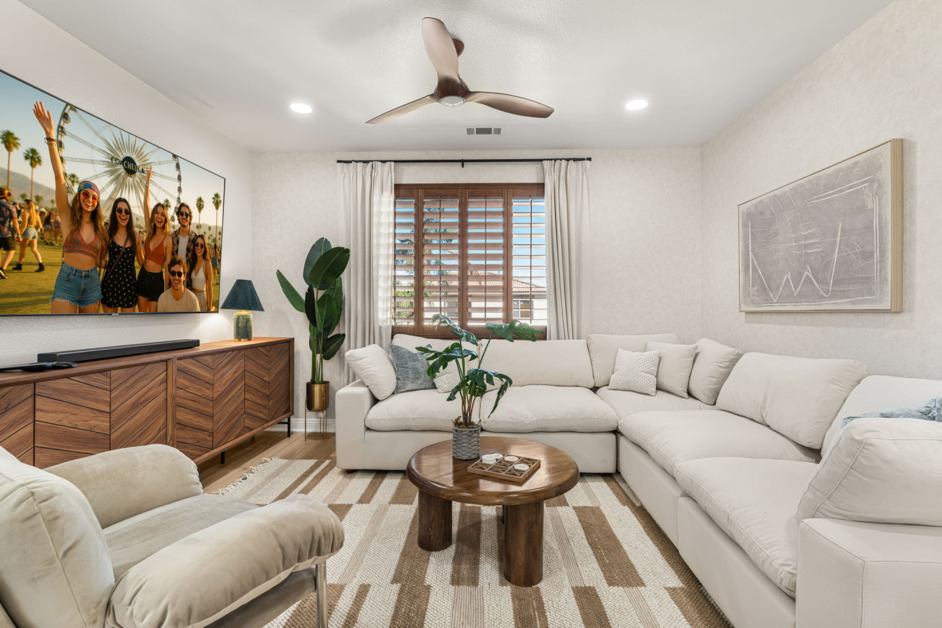 ☆ Inside Coachella Sol Haus, you’ll find a bright, open-concept living area and a chef’s kitchen stocked with everything you need to cook and entertain.