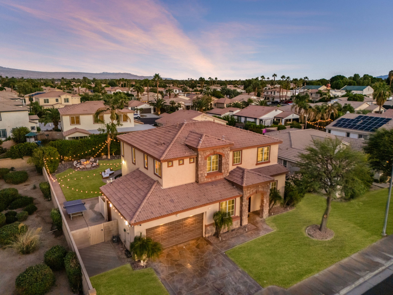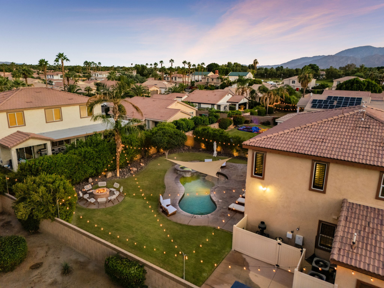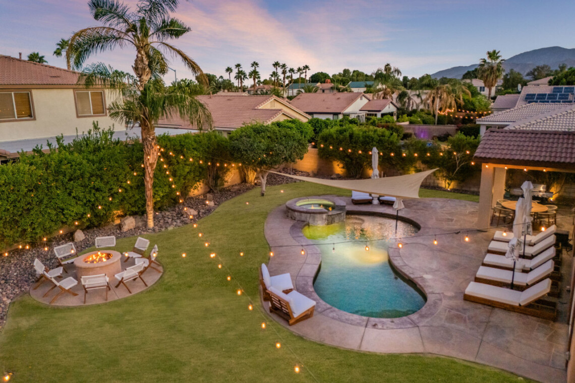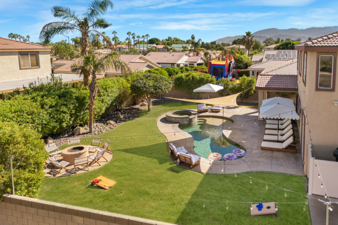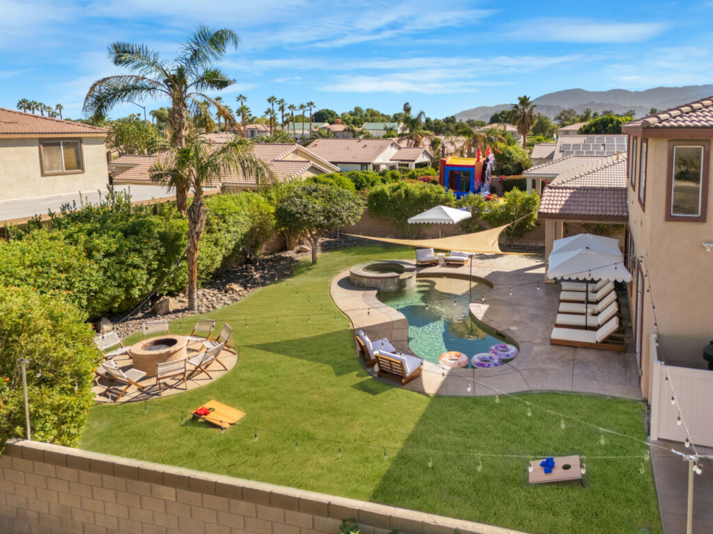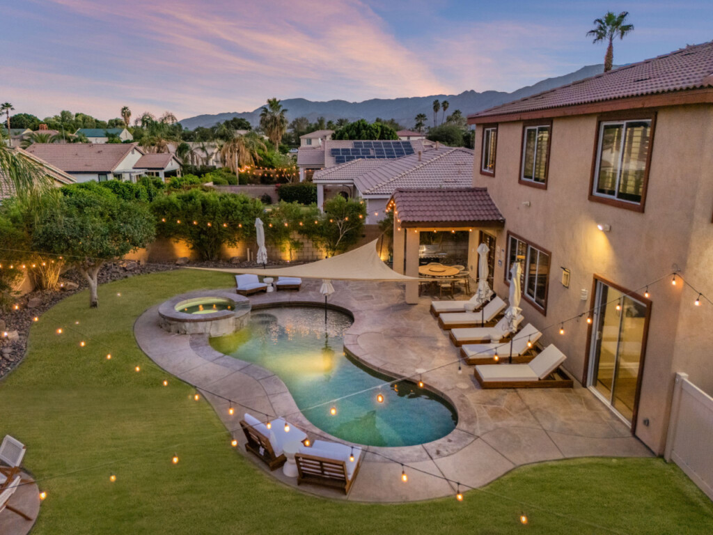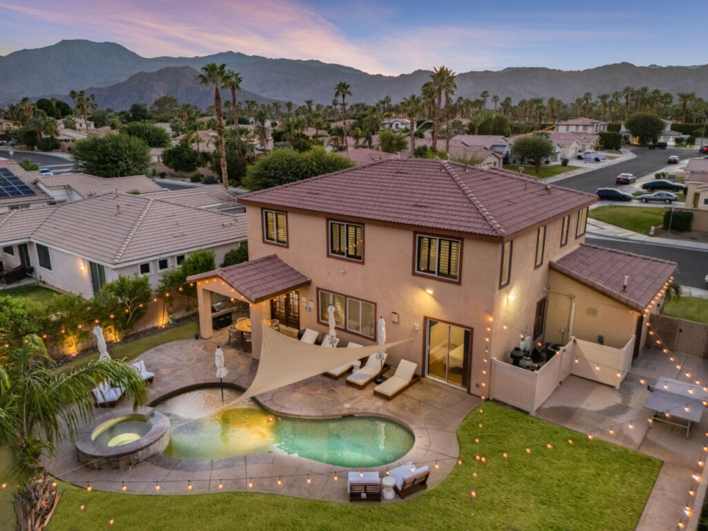 Shining from sunrise to starlight. Welcome to Coachella Sol Haus, a sun-drenched desert retreat made for connection, comfort, & unforgettable memories. This spacious 2 story home blends family-friendly warmth with resort-style amenities — the perfect base for festival weekends, golf getaways, or peaceful poolside escapes under the stars. Enjoy a heated pool, hot tub, firepit, string lights, games, & Insta-worthy mural. Inside: a chef’s kitchen, loft with 85″ TV, family amenities, & Tesla charger.