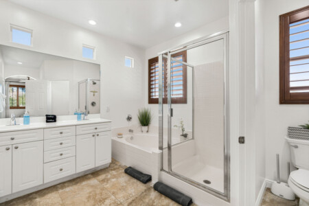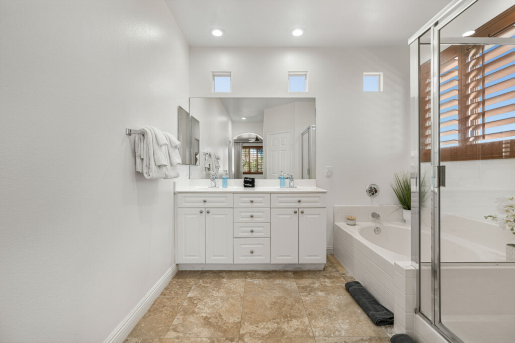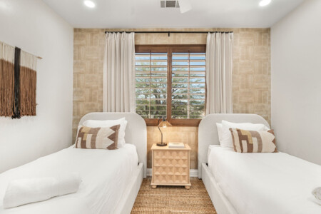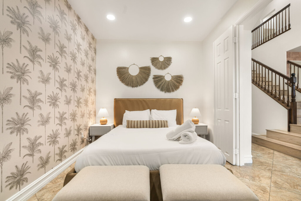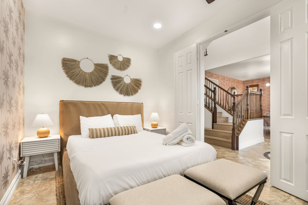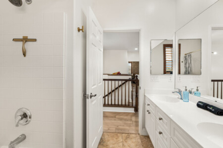 ☆ Upstairs: 2 bedrooms with queen beds, 1 bedroom with two twin beds, Primary suite with king bed, walk-in closet, and ensuite spa bathroom featuring a soaking tub and separate shower