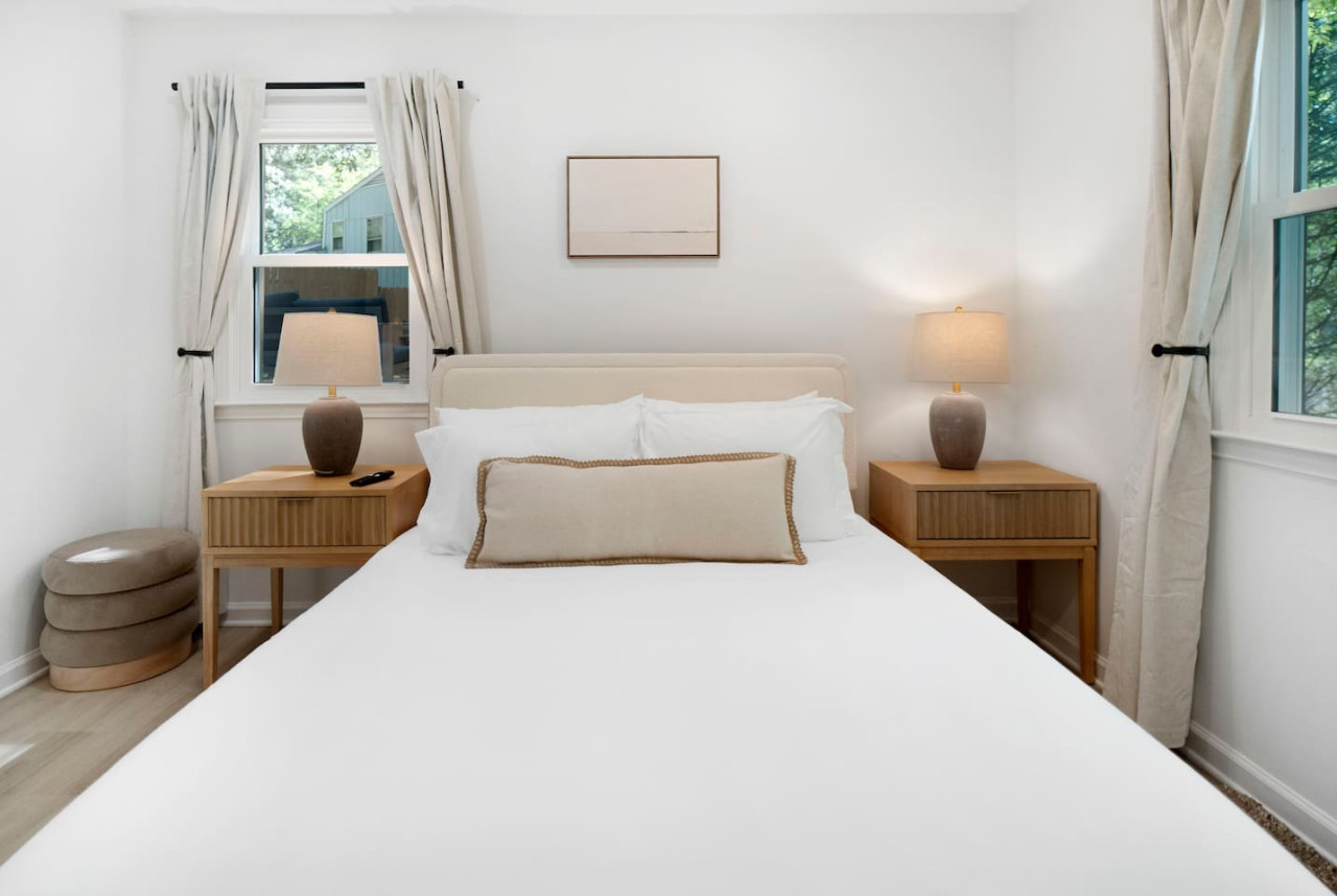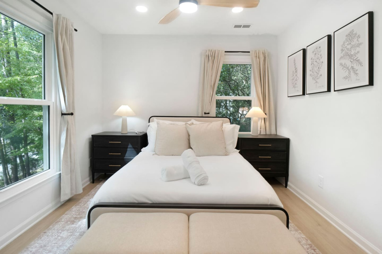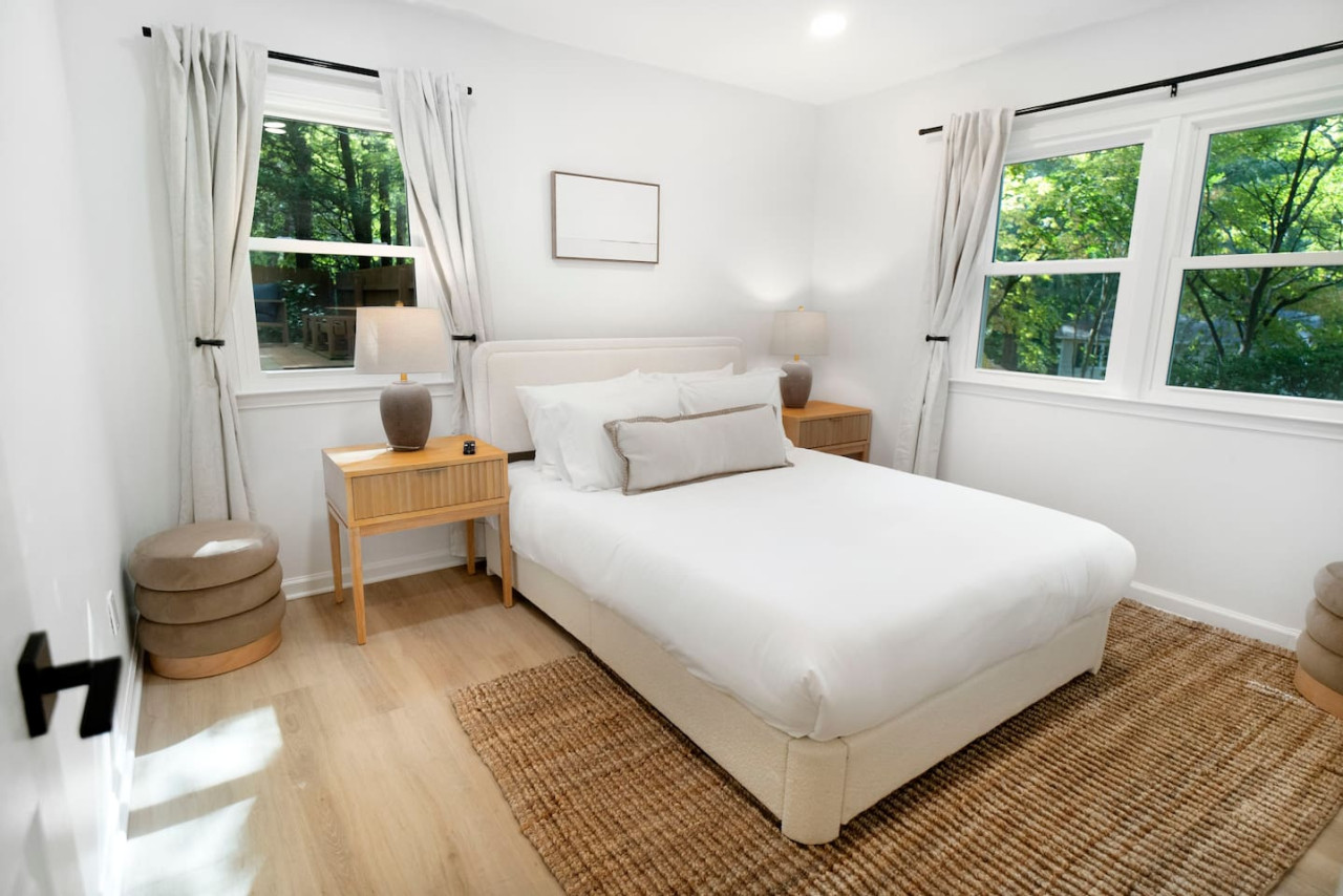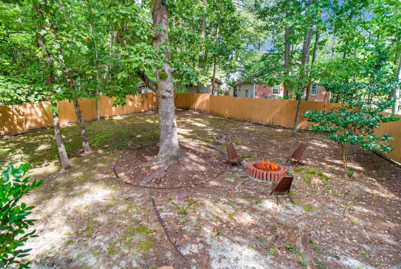 Welcome to Brandyapple Retreat, a beautifully renovated split-level home in Raleigh. - Modern open-plan living, dining, and kitchen space - Master bedroom with ensuite and balcony access - Fenced yard with deck, corn hole, and fire pit - Dedicated workspace for remote workers - Close to Pullen Park, Historic Oakwood, and Marbles Kids Museum This home has it all for a memorable stay! Welcome to Brandyapple Retreat, a beautifully renovated split-level home in Raleigh, perfect for families, remote workers, and pet lovers. This property offers a modern open-plan living, dining, and kitchen space, ensuring a comfortable and stylish atmosphere for your stay. Enjoy a master bedroom with an ensuite bathroom and direct access to outdoor dining with a gas fire pit. The downstairs area features additional bedrooms, a dedicated workspace, and direct access to a fenced yard with a deck, corn hole, and a wood-burning fire pit, making it ideal for relaxation and fun. The home combines comfort and style, offering amenities that cater to families, remote workers, and pet lovers alike. Whether you're planning a short getaway or an extended stay, this home has everything to ensure a memorable and comfortable experience for all. Comfortable Accommodation: - Master bedroom…