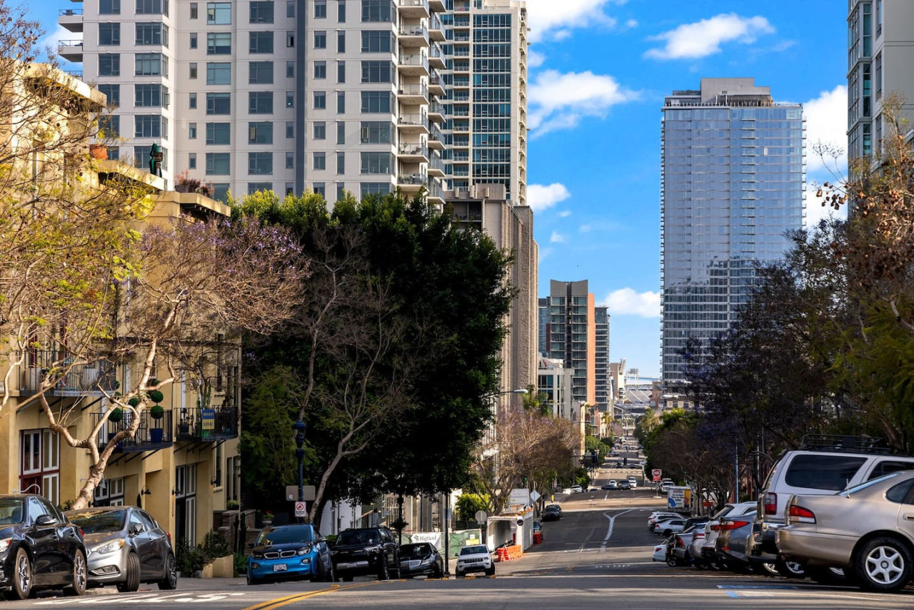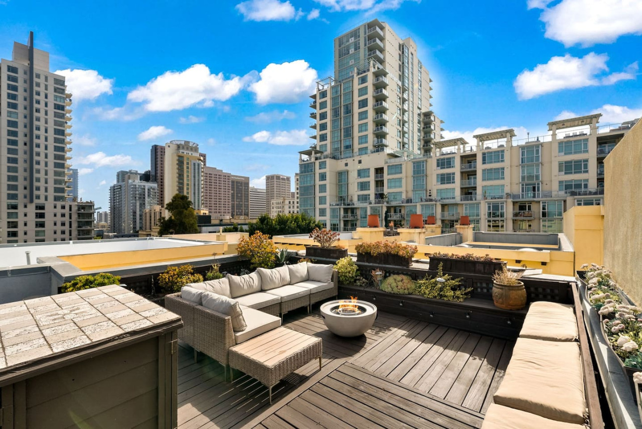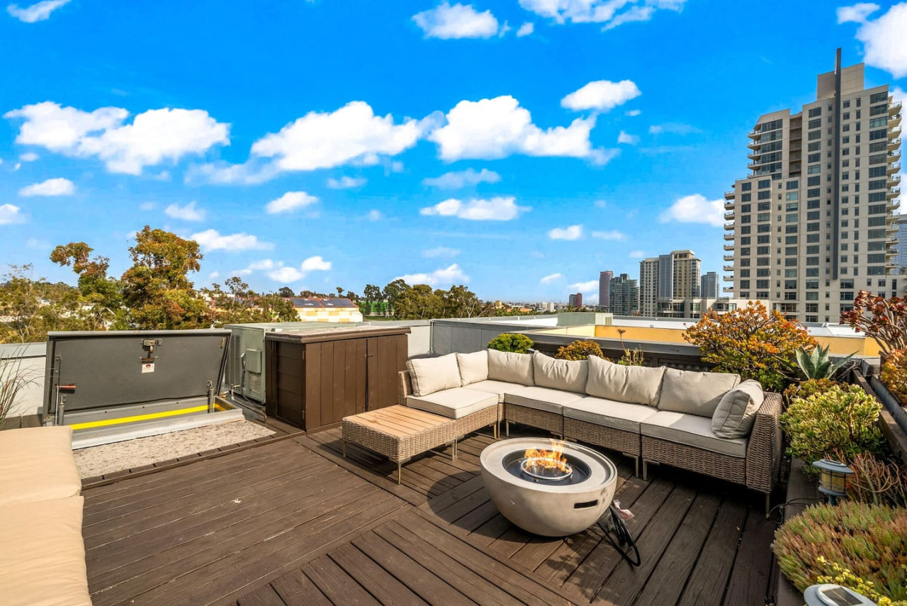 Welcome to City Lights & Rooftop Nights! - Updated 2BR townhome with stylish furnishings - Private rooftop lounge with firepit and city views - Spacious master suite with king bed and ensuite - Family and pet-friendly with kid amenities - Fully stocked kitchen and modern living area - Steps from top attractions like San Diego Zoo and Balboa Park - Central AC, high-speed WiFi, and digital guidebook for local tips - Enjoy a relaxing urban escape! Discover “City Lights & Rooftop Nights!” This updated 2BR townhome in San Diego is the perfect urban escape for families or friends. With a master suite featuring a king bed, a queen fold-out, and a walk-in wardrobe, plus a second bedroom with a queen bed and pull-out, this property comfortably accommodates up to 9 guests. The living room also offers a queen fold-out couch, making it ideal for larger groups. Enjoy a private rooftop lounge with a firepit and walkable access to top restaurants and attractions. As of July 2025, this home has been thoughtfully updated with $15K in new furnishings to enhance your comfort and style. The vibrant Core-Columbia neighborhood places you steps away from San Diego’s best attractions, making it a perfect…