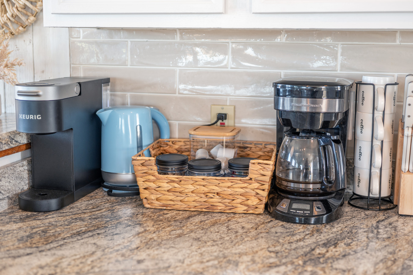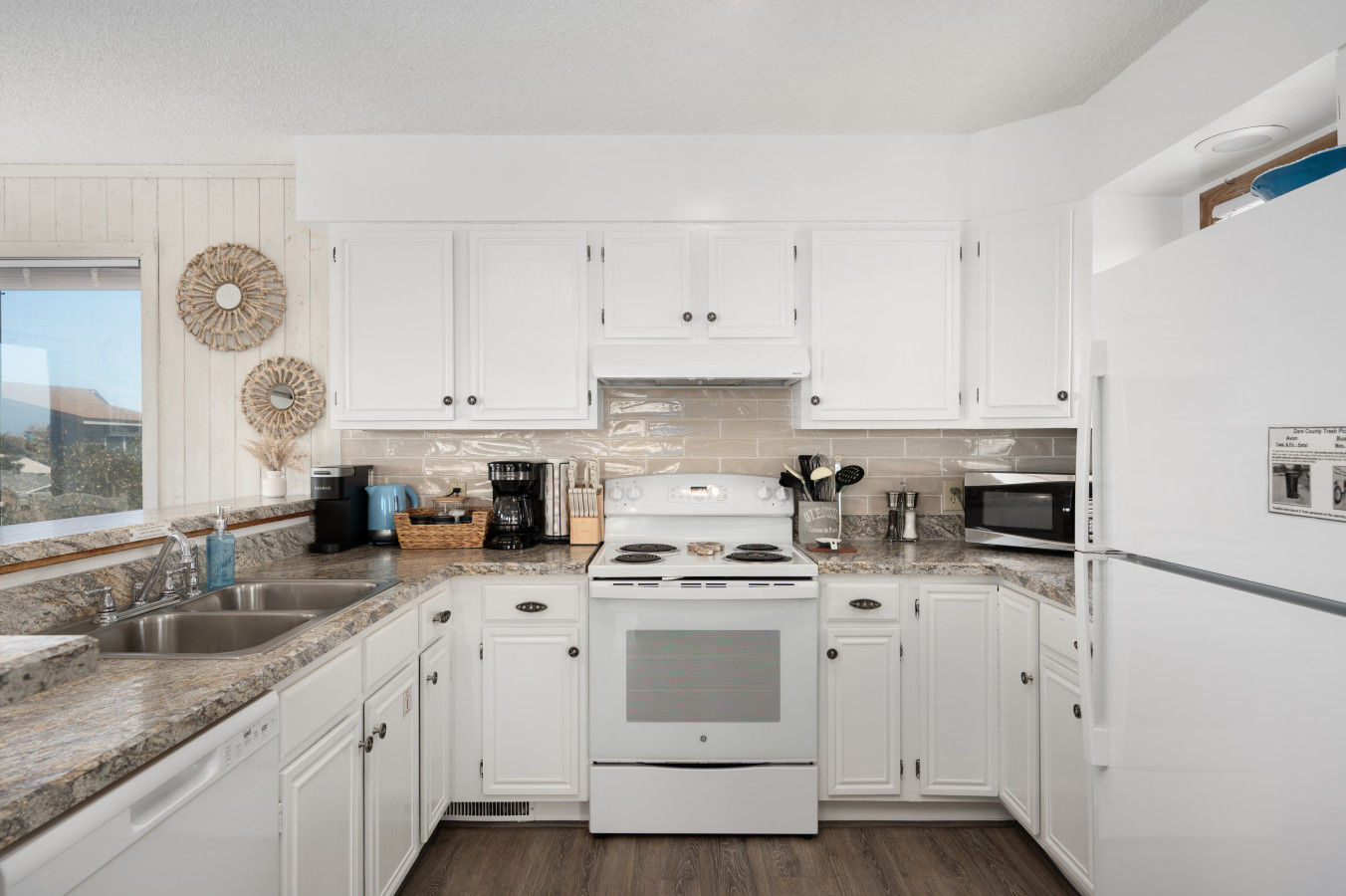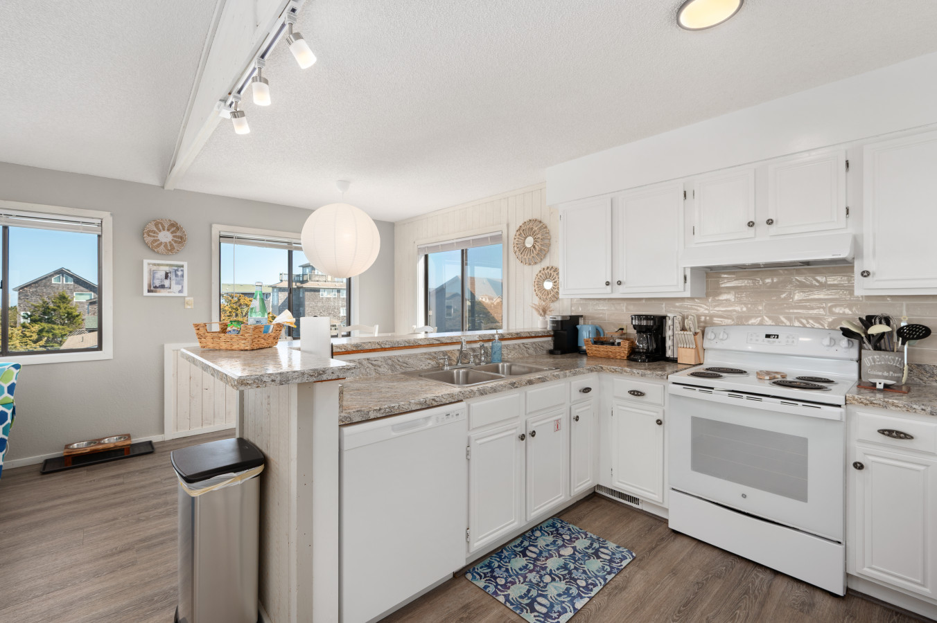 – The fully equipped kitchen includes everything needed to prepare meals during your stay, including an electric stove and oven, microwave, dishwasher, refrigerator, freezer, blender, toaster, Keurig coffee machine, electric kettle, baking sheets, and cooking essentials.