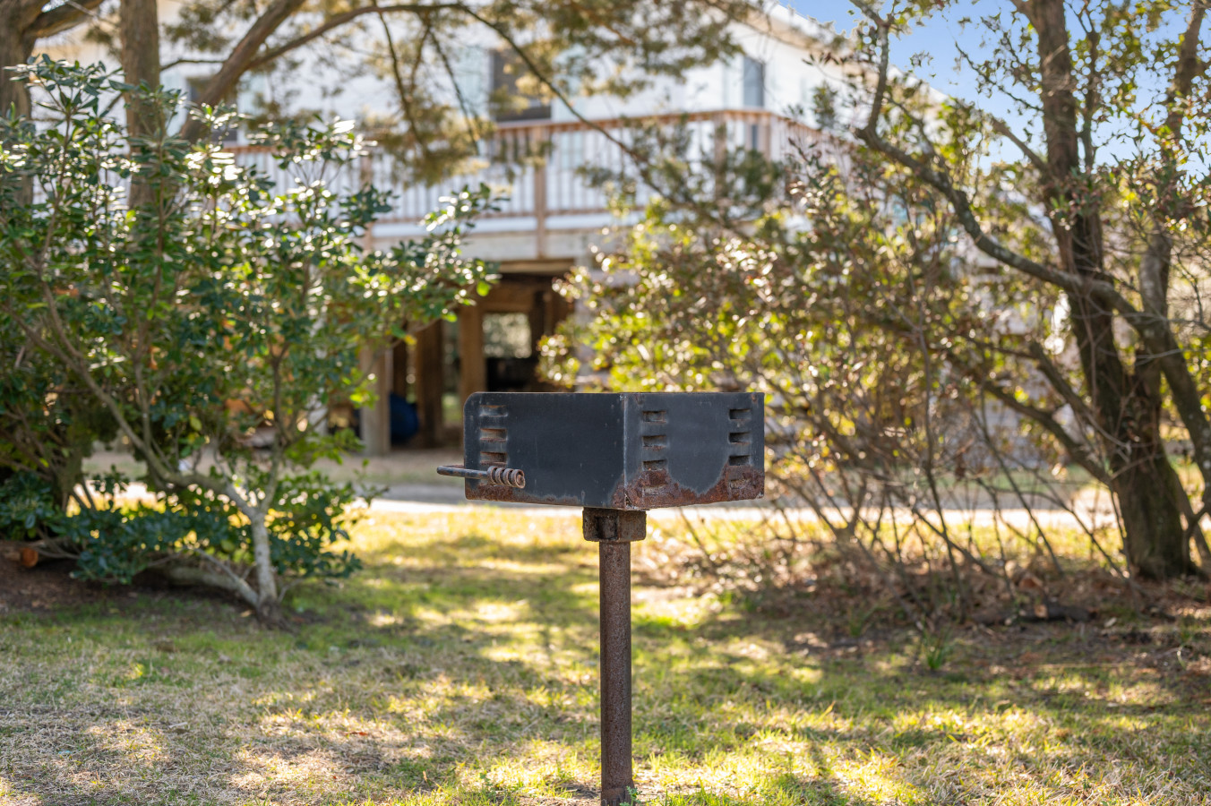 – A charcoal camp-style grill is provided for cookouts, though guests should bring their own charcoal.