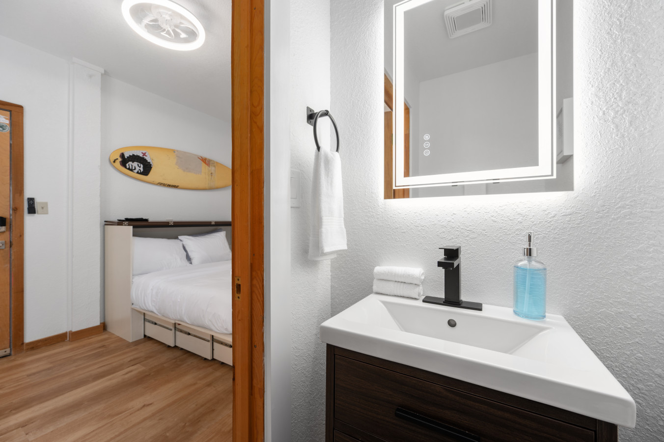– This suite is accessed separately from the main home via its own smart lock and is located next to the outdoor hot tub area.