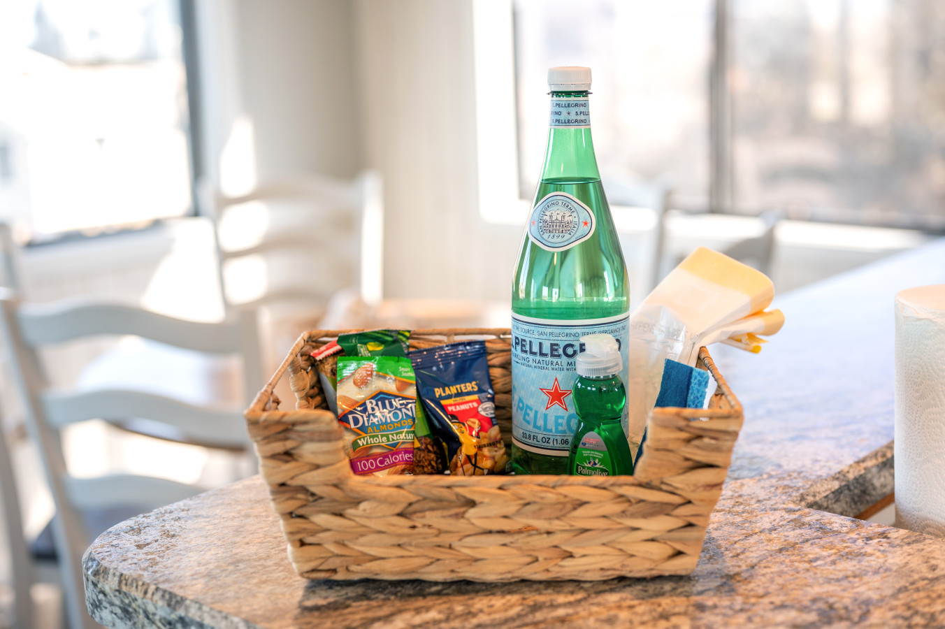 – The dining area offers seating for five at the table, with additional seating for four at the kitchen counter.