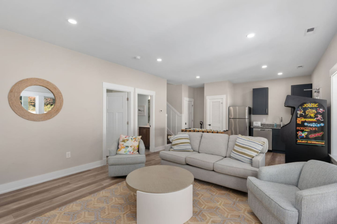 – Game room with foosball and arcade machine