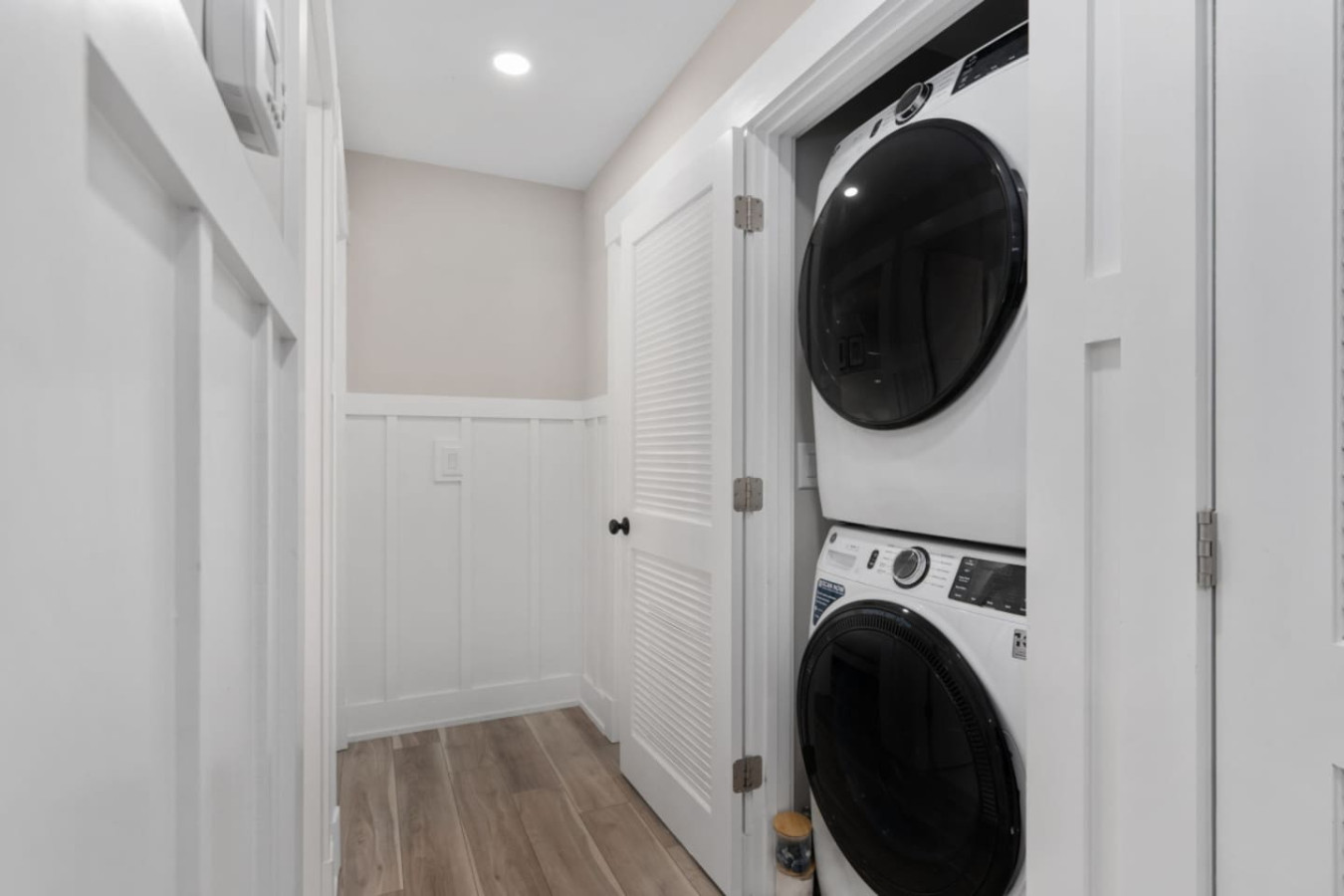 – Laundry Closet with stackable washer & dryer plus complimentary laundry pods and dryer sheets