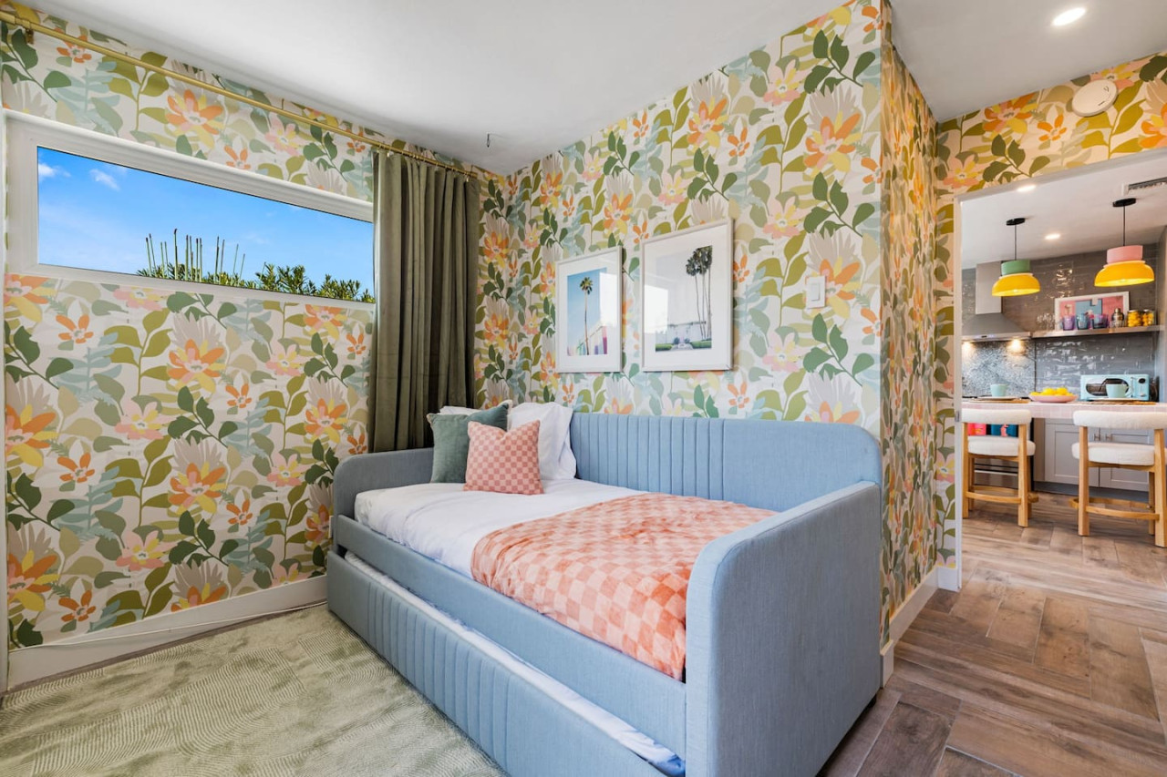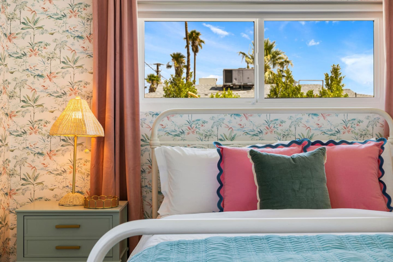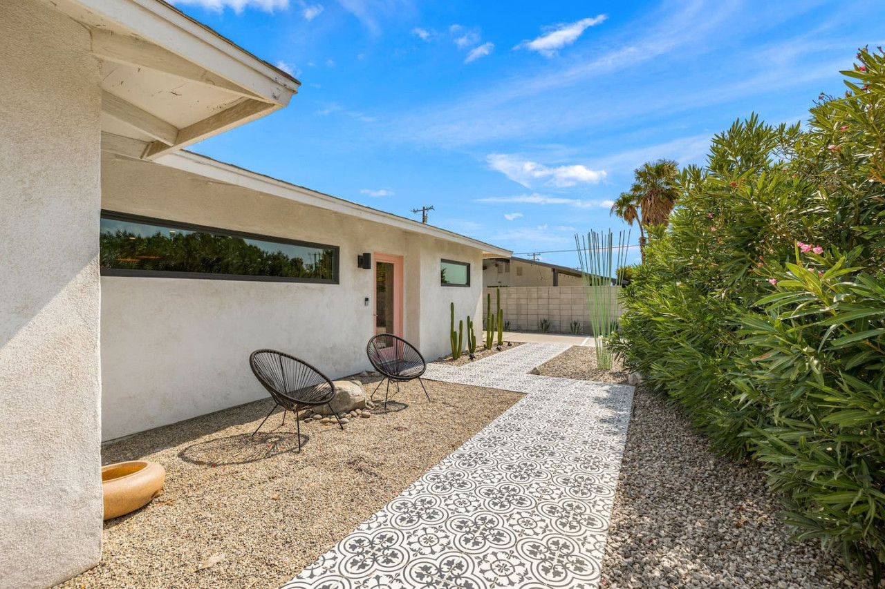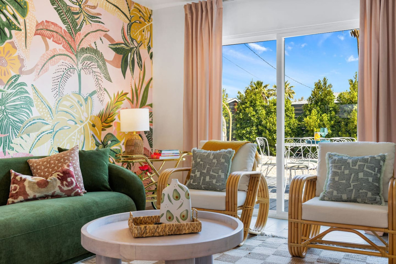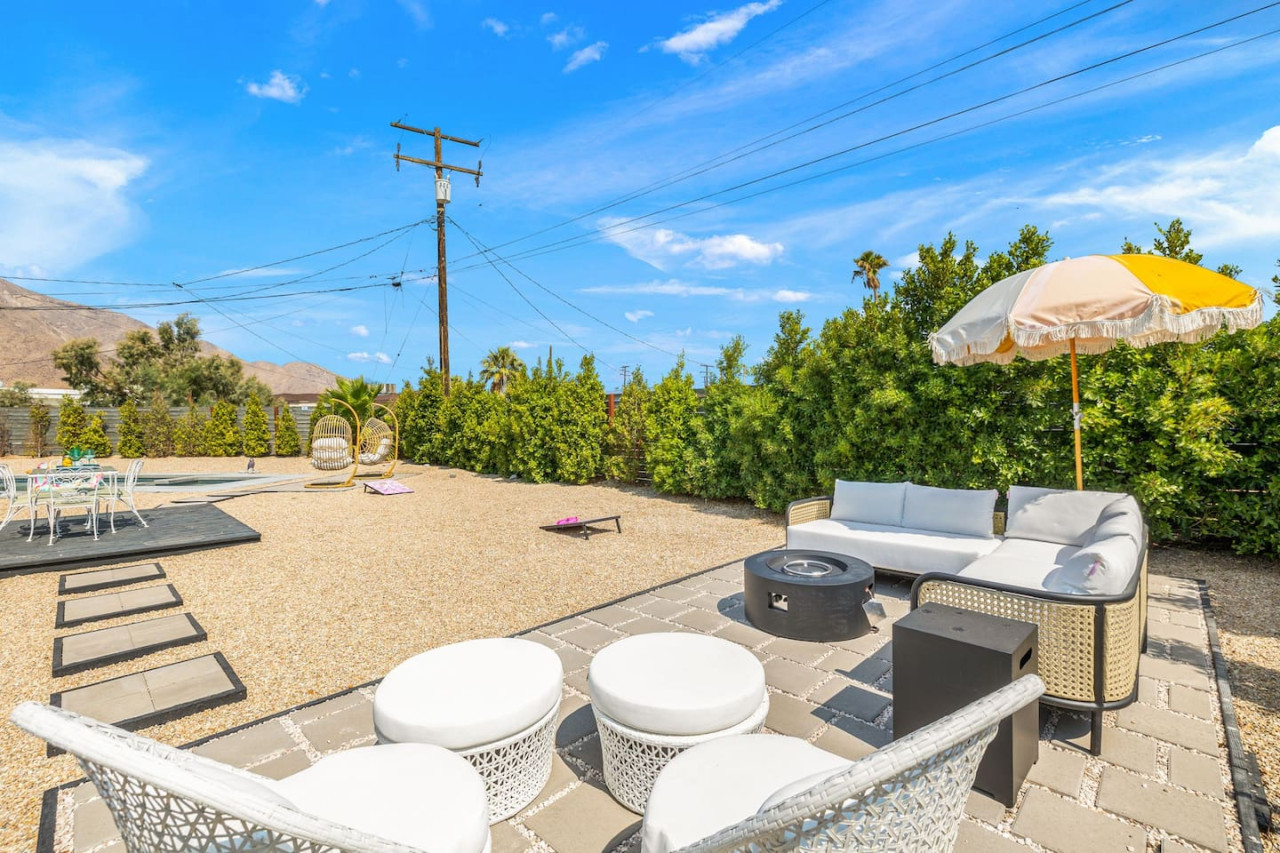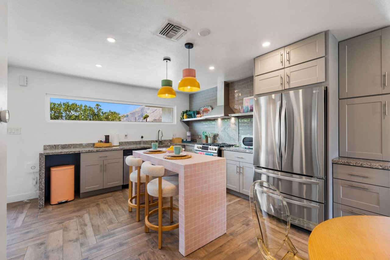 Celebrate your special moments at the Whimsical Oasis Retreat. - Vibrant floral decor and pink accents create a fun atmosphere. - Heated L-shaped pool with spa-side hot tub and outdoor dining for 6. - Three comfortable bedrooms, including a master with en-suite. - Smart home features for optimal comfort. - Family and pet-friendly amenities ensure everyone is welcome. - Only 3.5 miles from downtown Palm Springs. - Highly recommended by previous guests! Celebrate your special moments at the Whimsical Oasis Retreat in Palm Springs, CA, the perfect destination for bachelorette parties and birthday celebrations. This beautifully decorated home features floral wallpaper and pink accents throughout, creating a fun and vibrant atmosphere that will make your stay unforgettable. Maximum occupancy is 6 overnight guests ages 13+ and 2 guests 12 and under (total of 8 guests), per city regulations. Outdoor Bliss: - Heated L-Shaped Pool: 12ft x 36ft, depths up to 5ft, with spa-side controlled hot tub. Enjoy pool floats and evening oasis with pool and hot tub lights. - Sun Lounge Area: Equipped with 6 sun lounge chairs, umbrellas, a sectional sofa, and a fire pit for relaxation and socializing. - Outdoor Dining & BBQ: Propane BBQ with utensils and…