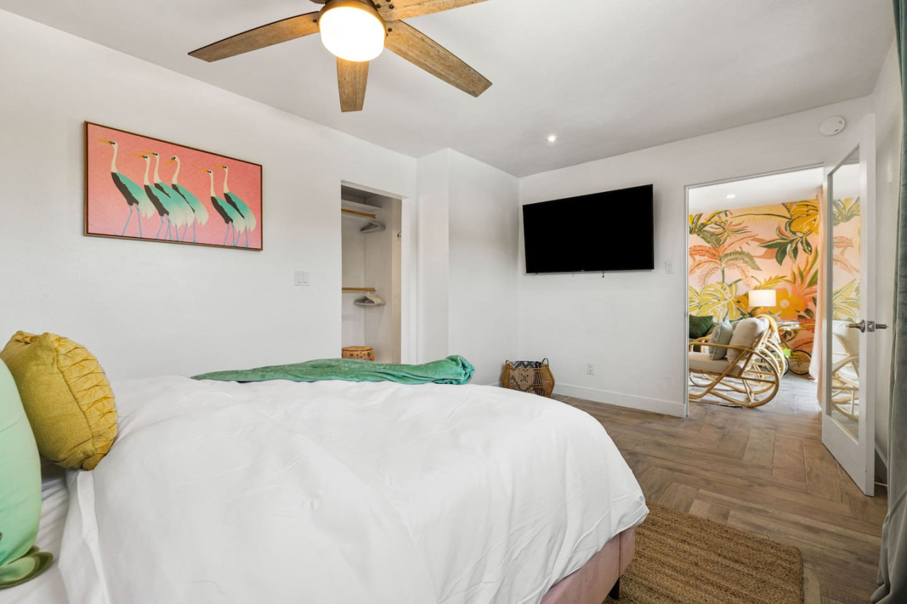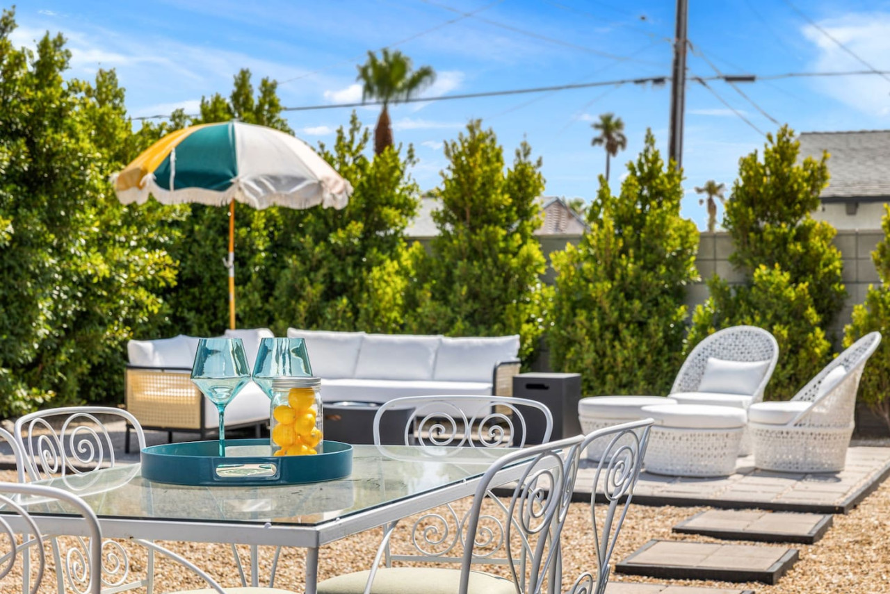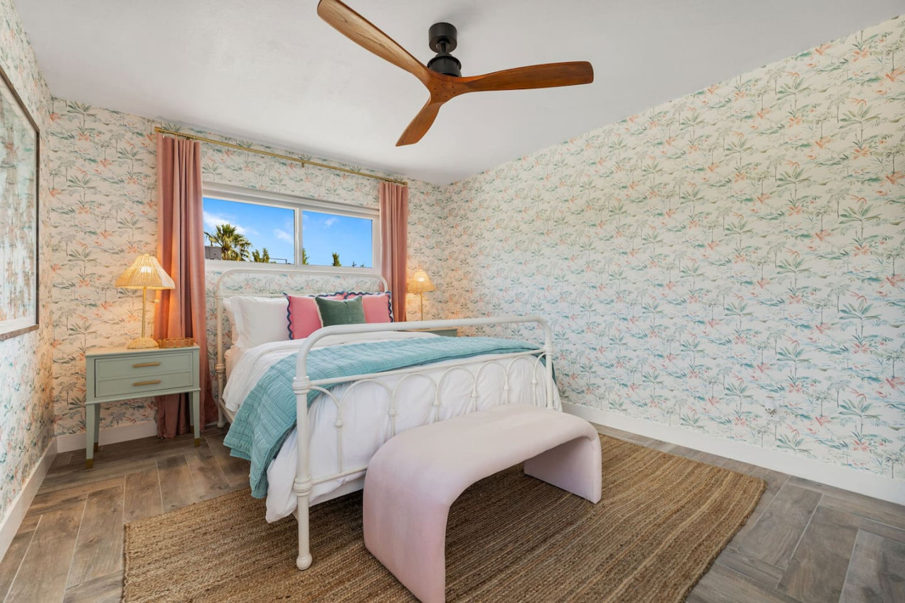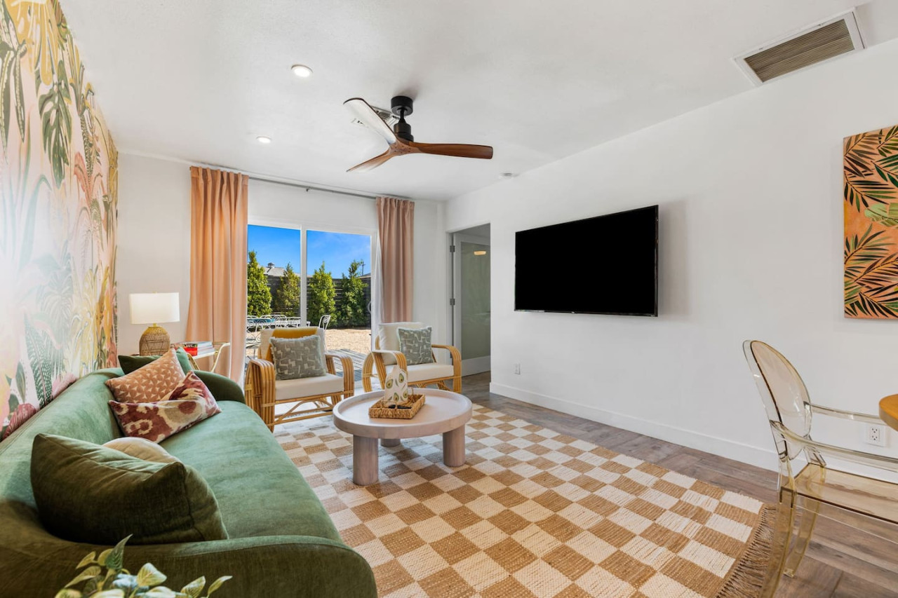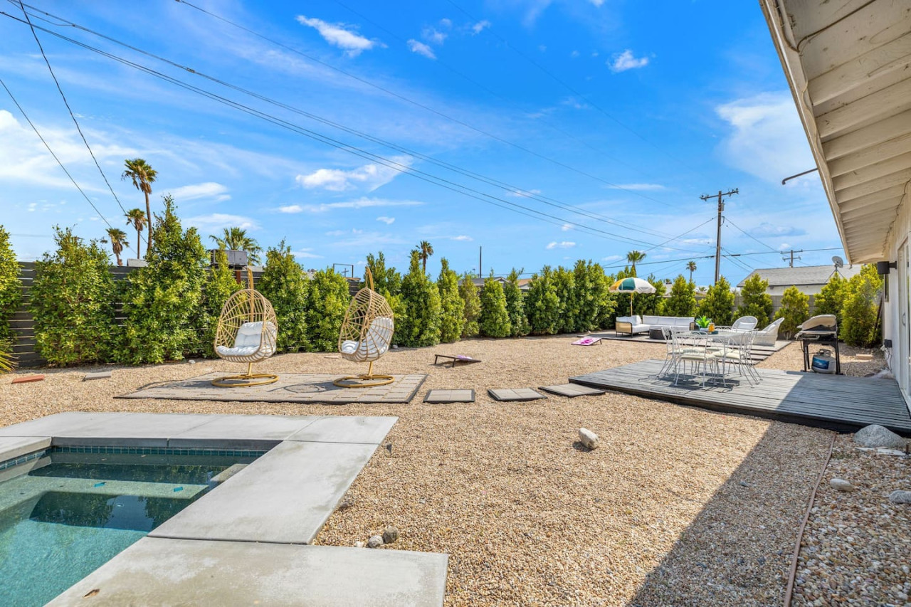 Celebrate your special moments at the Whimsical Oasis Retreat. - Vibrant floral decor and pink accents create a fun atmosphere. - Heated L-shaped pool with spa-side hot tub and outdoor dining for 6. - Three comfortable bedrooms, including a master with en-suite. - Smart home features for optimal comfort. - Family and pet-friendly amenities ensure everyone is welcome. - Only 3.5 miles from downtown Palm Springs. - Highly recommended by previous guests! Celebrate your special moments at the Whimsical Oasis Retreat in Palm Springs, CA, the perfect destination for bachelorette parties and birthday celebrations. This beautifully decorated home features floral wallpaper and pink accents throughout, creating a fun and vibrant atmosphere that will make your stay unforgettable. Maximum occupancy is 6 overnight guests ages 13+ and 2 guests 12 and under (total of 8 guests), per city regulations. Outdoor Bliss: - Heated L-Shaped Pool: 12ft x 36ft, depths up to 5ft, with spa-side controlled hot tub. Enjoy pool floats and evening oasis with pool and hot tub lights. - Sun Lounge Area: Equipped with 6 sun lounge chairs, umbrellas, a sectional sofa, and a fire pit for relaxation and socializing. - Outdoor Dining & BBQ: Propane BBQ with utensils and…